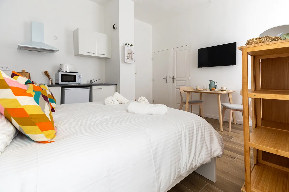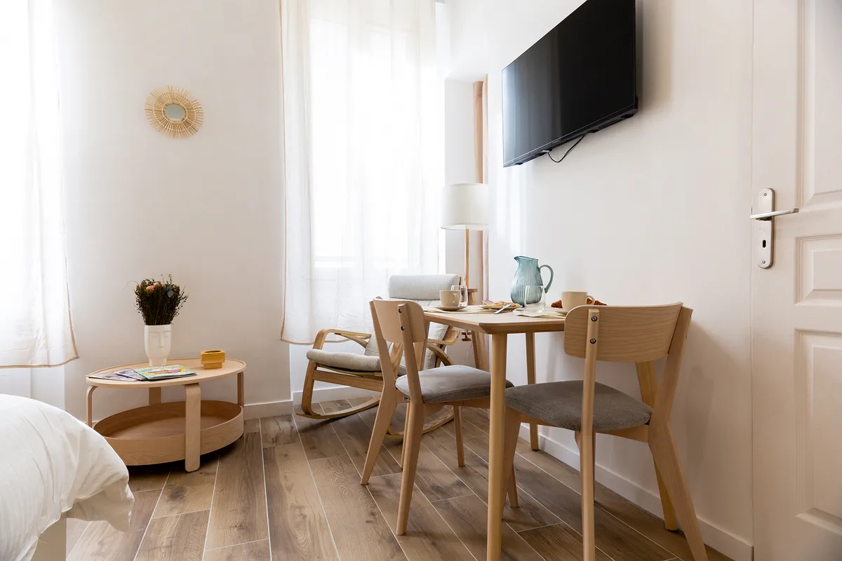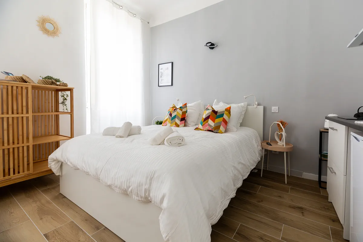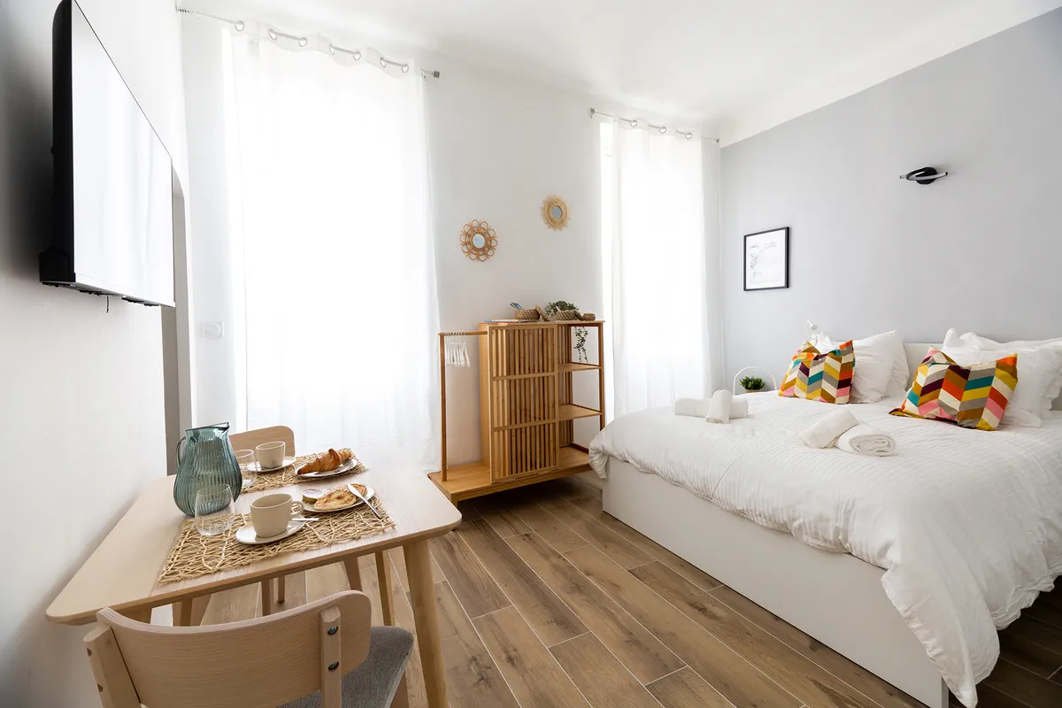 Élégant studio de 20M2 entièrement rénové à 5min. à pied du Vieux port, au cœur du Quartier des Antiquaires. Confort hôtelier (lit Queen-size, oreillers en plume, WIFI fibre, TV connectée), kitchenette toute équipée. Quartier vivant et culturel, cafés et boutique à deux pas.