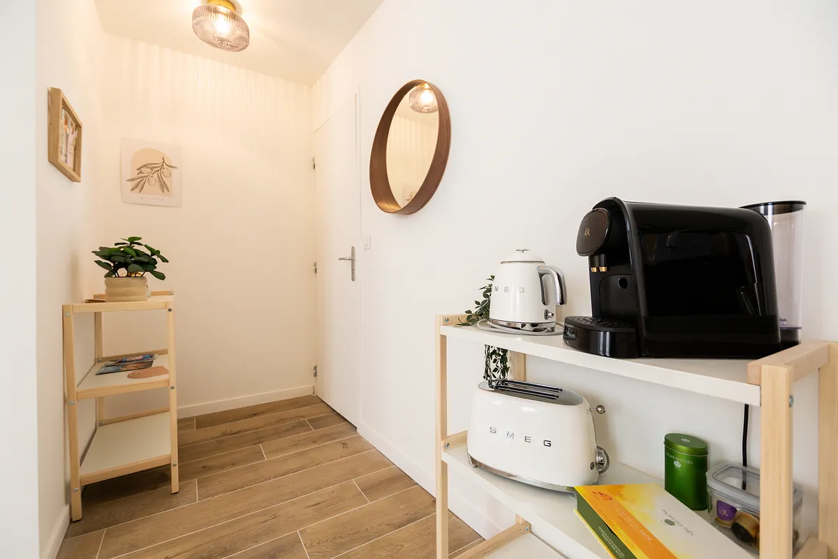 Situé dans un immeuble calme, ce logement de 50m2 a été pensé pour offrir un séjour confortable aux voyageurs en quête de practicité et d’authenticité marseillaise. Appartement rénové et décoré avec goût pour une atmosphère chaleureuse, au sein d’un quartier vivant mais paisible, idéal pour découvrir Marseille à pied.